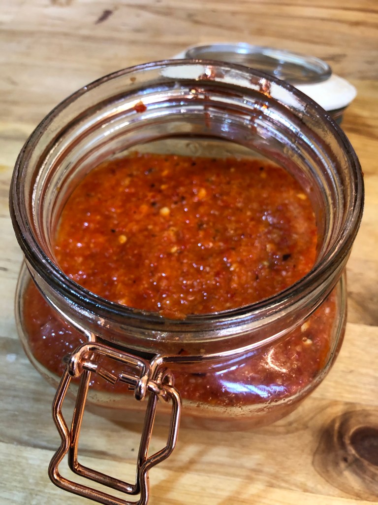 Add some of the flavoured water to the chilli paste in a sterilised jar and leave until ready.