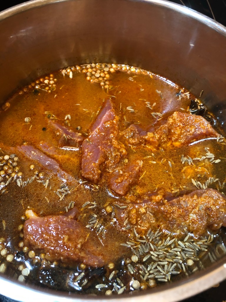 The dish had 3 stages. Marinating the duck, a quick stewing of the duck then the Savoy cabbage curry mix.