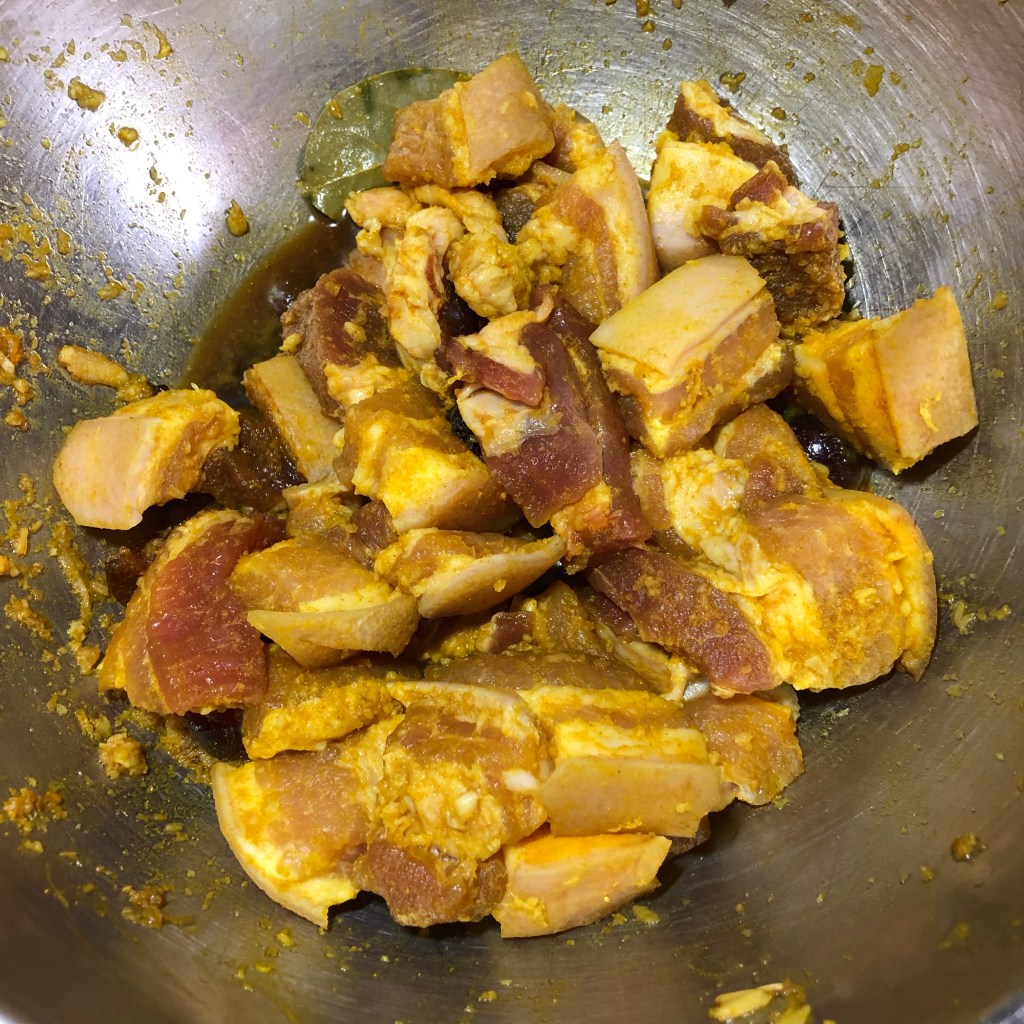 I had a packet of belly pork left over, I used the same method of marinating the pork for the chilli pork bunny chow but did the marinade for 24 hours.