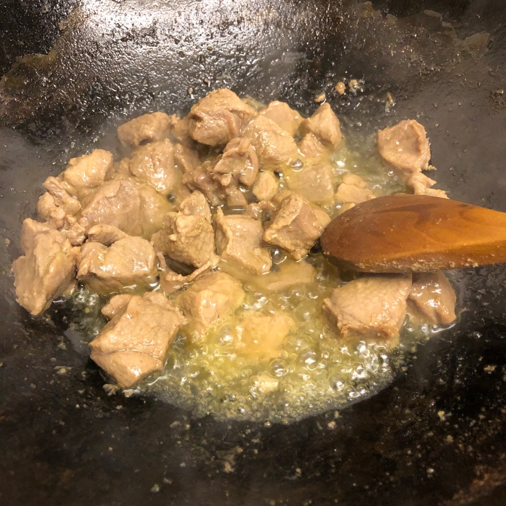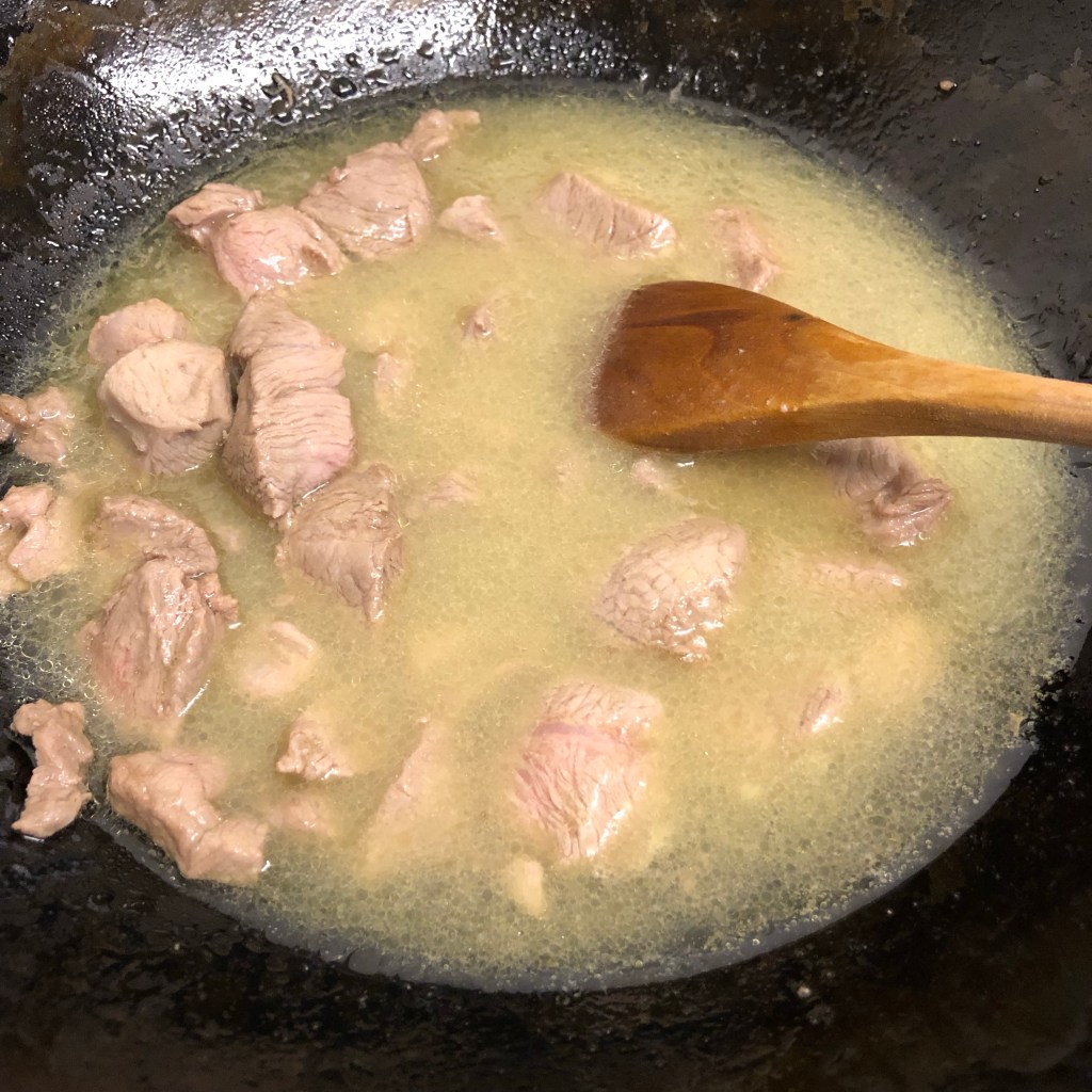 Heat the oil then add your lamb to brown the meat. Once the meat has browned add 250ml of the garlic water and bring to a simmer.
