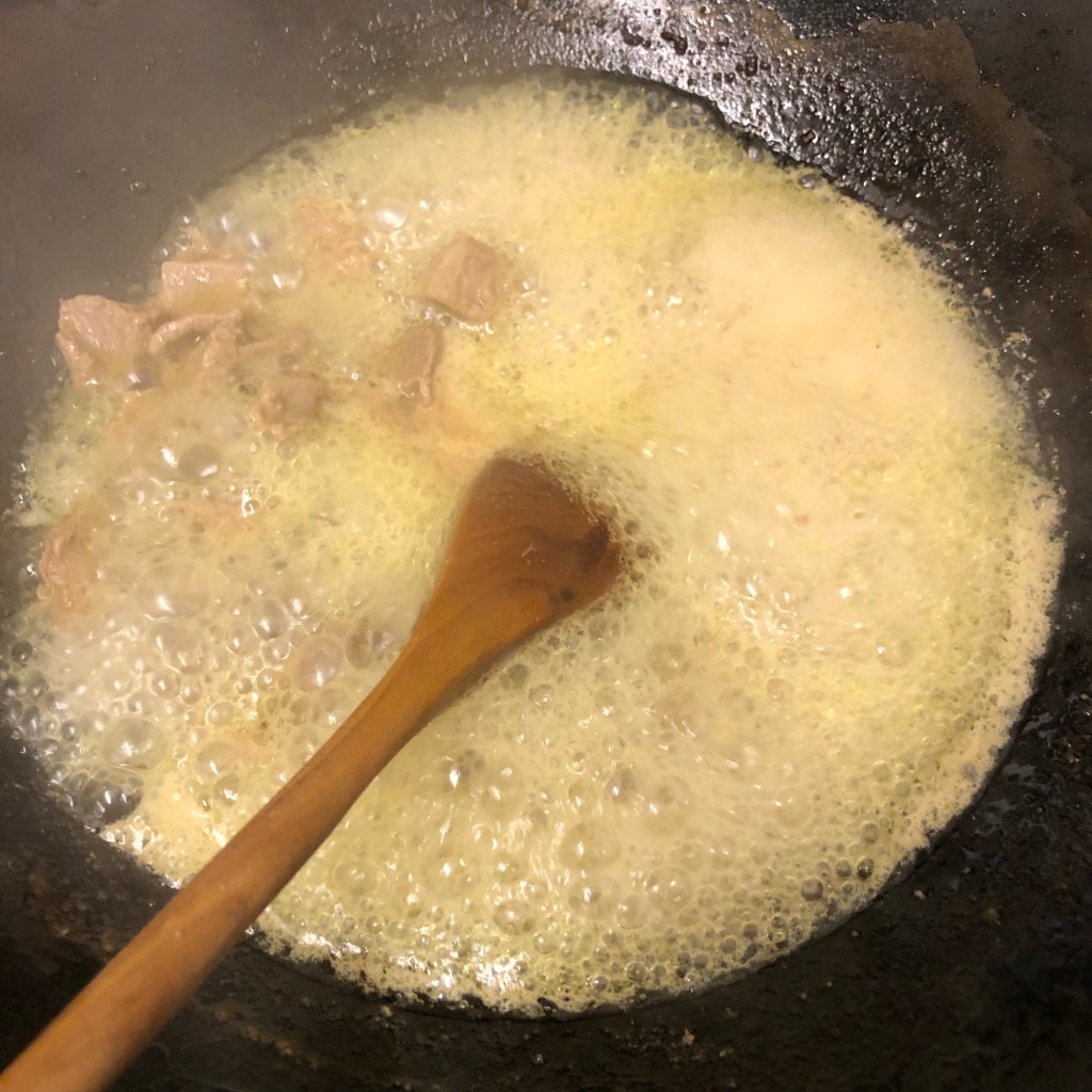 Allow this to reduce a little more. Once the stock has reduce then add a touch of salt and the fenugreek.