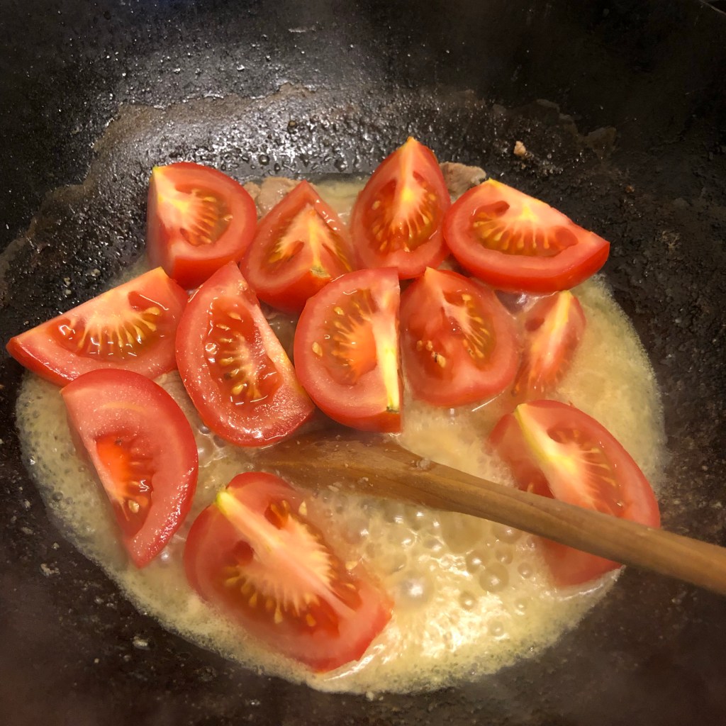 Once this has reduced use the spoon to break down the tomatoes into the stock to create a sauce.