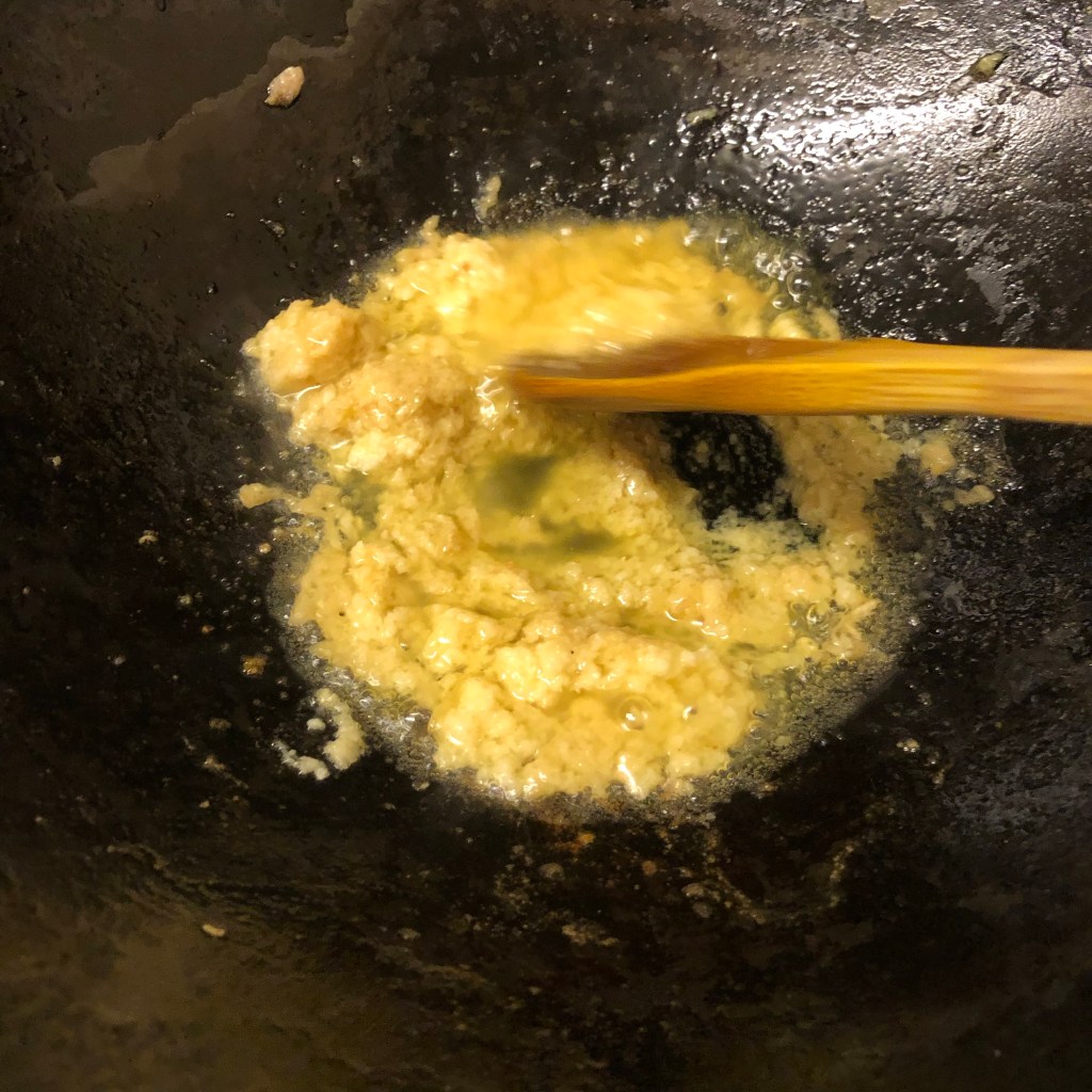 Heat the ghee of oil in a hot pan, when the oil is hot add the garlic and ginger paste, it will spit as it hits the hot oil but will start to release flavours into the oil.
