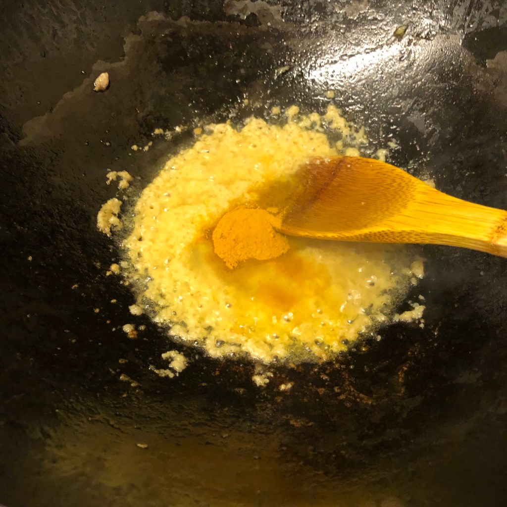 Add the turmeric and stir well frying it for 30 / 40 seconds.