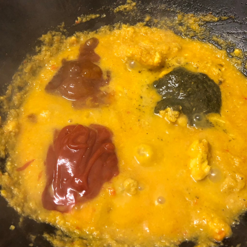 Stir in 1 cup of the pre-made base sauce, allow this to come to a simmer, As the sauce caramelises on the side of the pan stir this into the sauce as it contains a lot of flavour.