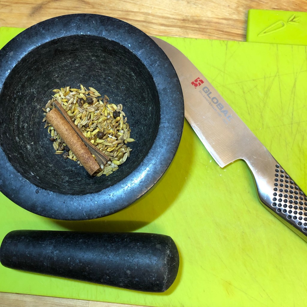 You have three parts to this dish, the marinade, the spice cooking and grinding then the actual cooking. Nothing complicated about the dish at all.