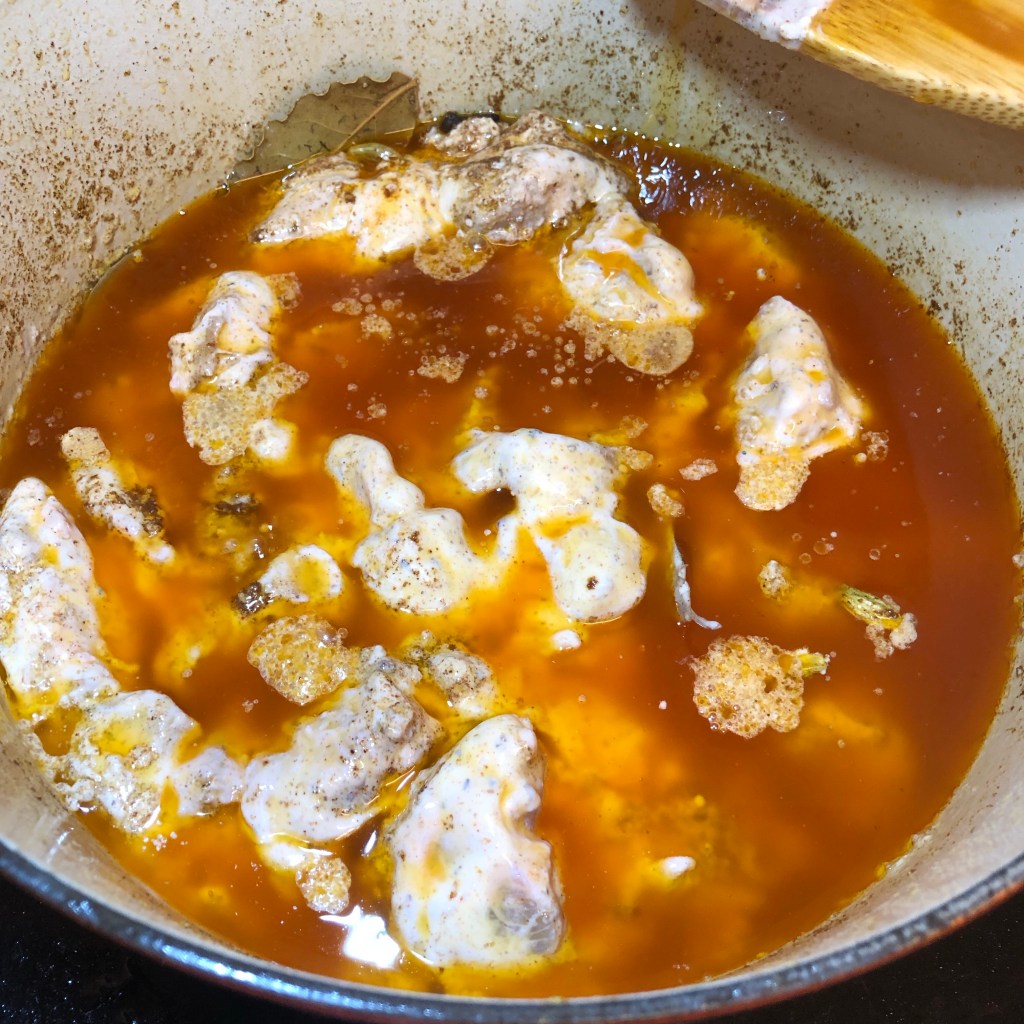 Add a cup of water, cover and simmer for 45 minutes or so until the meat is nice and tender.