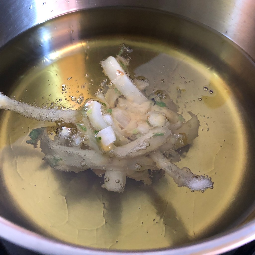 I fried these in small batches, once to get a nice colour then finished them off again for a second fry to add the final crispy crunch you all love. The frying process is by the eye, the more you do the better you become.