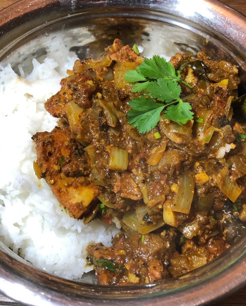 This dish contains three main parts – the marinade, the Chettinad spice mix and the sauce.
