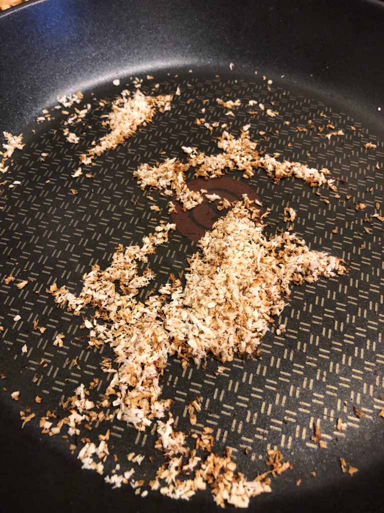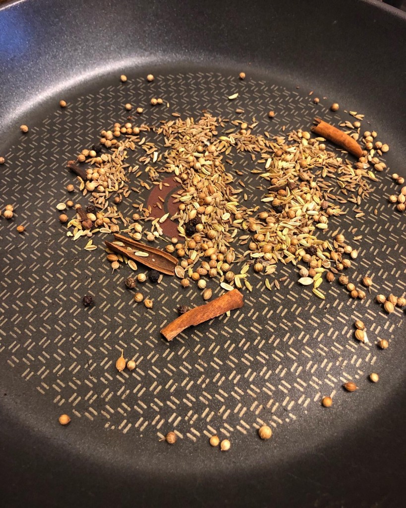 Take the remaining ingredients and add them to the hot pan repeating the same process. The kitchen will smell great and you will know you’re onto a winner. I did mine in two batches. The coconut first as this takes seconds to brown up, then the whole spices.
