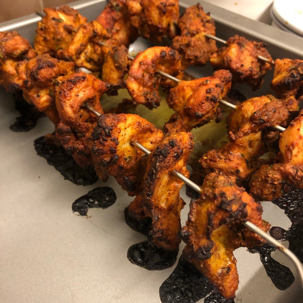 First and foremost the marinade. Ingredients- 1/2 tsp of turmeric, 1/4 tsp of Kashmiri chilli powder, juice of 1 lemon, 2 tbsp of natural yogurt, 2 tbsp of garlic and ginger paste. Mix in your chicken pieces and allow them to have a flavour party for at least 30 minutes. Longer the better really.