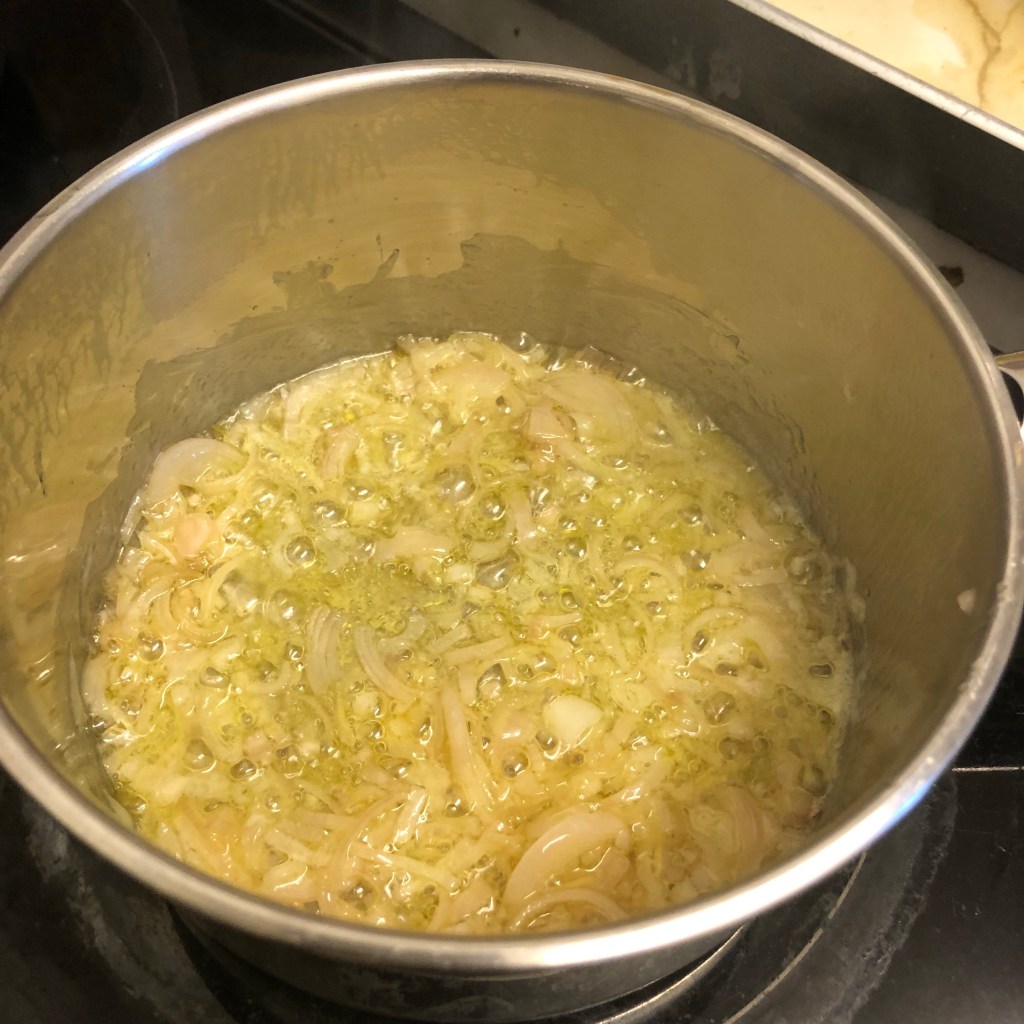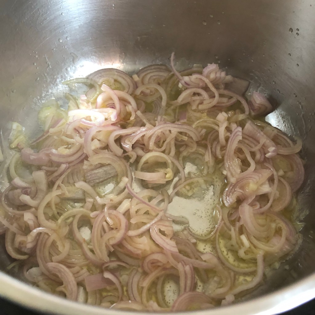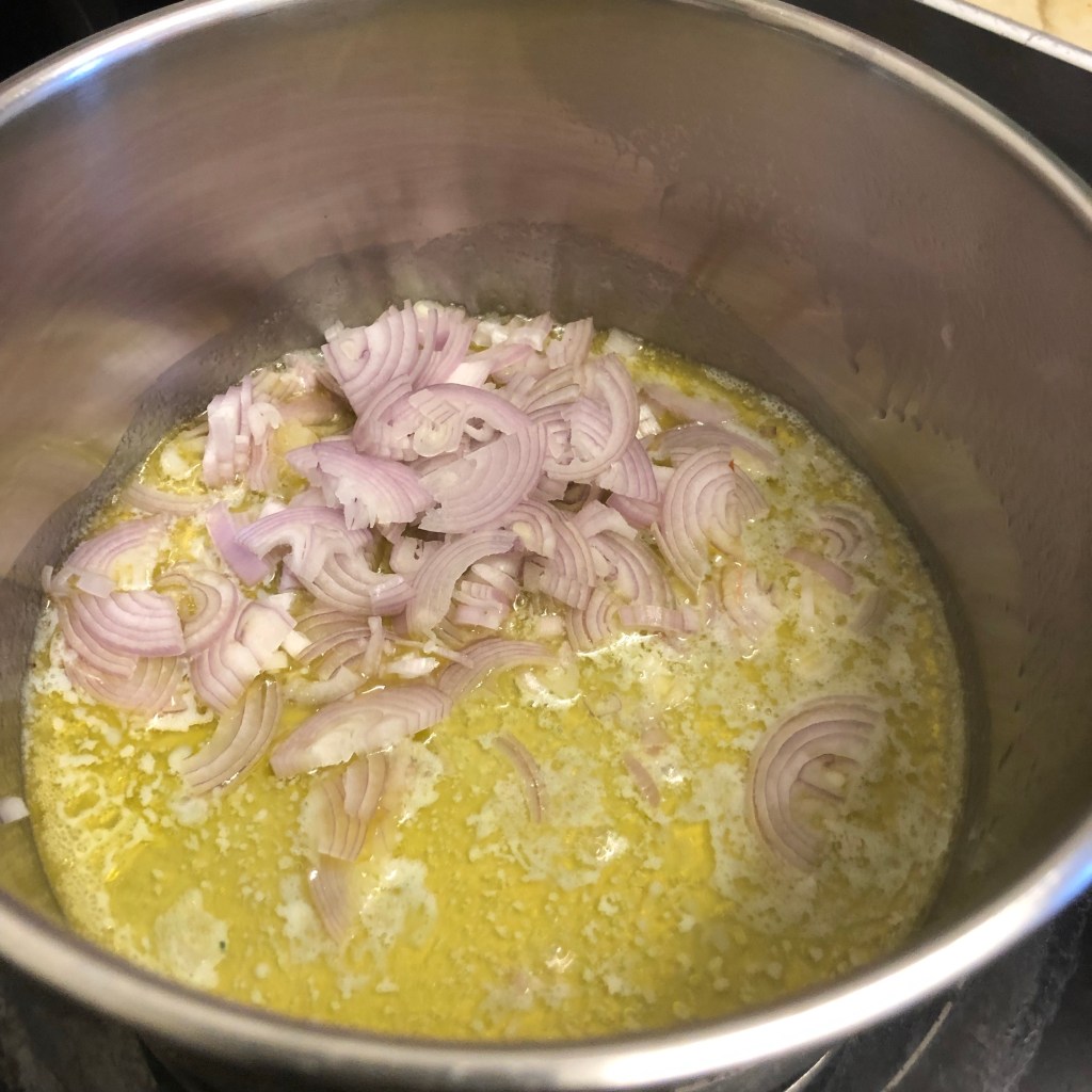 Heat the butter, once the butter has melted add the shallots and let them soften for a minute or so.