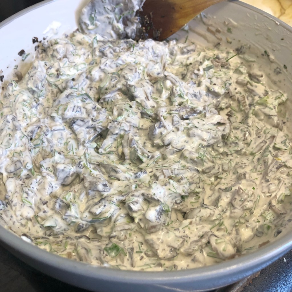 Part two – mushroom filling. 20g of unsalted butter, 1tsp of sunflower oil, 2 shallots finely diced, 300g of mushrooms (any mushroom of your choice) 120g mascarpone, zest of 1/2 a lemon, 3 or 4 tarragon sprigs, small handful of flat leaf parsley chopped, small handful of chives chopped, salt and pepper.