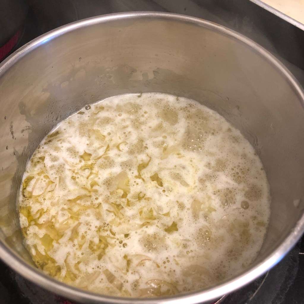 Part three -white wine sauce. 20g butter, 1 shallot finely diced, 100ml of wine and the rest for the chef, 300ml of stock, I used chicken stock, 150ml double cream, 40g of unsalted butter, 1tsp of chopped chives, 1tsp of chopped parsley.