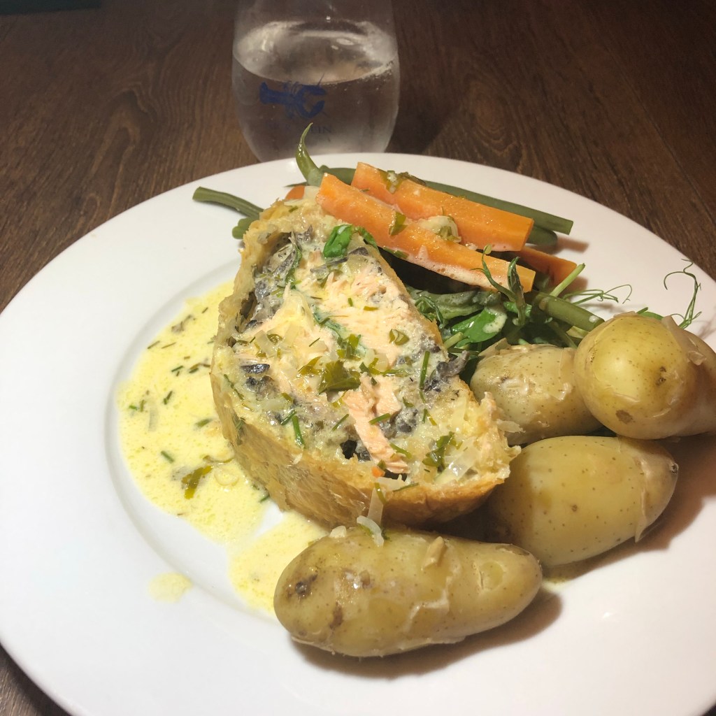Having sat reading a cook book on Sunday morning with a cup of tea this recipe stood out. Taken from Rick Steins At Home cook book which was written in lockdown who better to turn to for a fish dish….good old Ricky!!! It’s certainly didn’t disappoint. Oh my days! Not only was this outside of my comfort zone playing with pastry but making a white wine sauce. As they say on Soccer Saturday – unbelievable Jeff!!