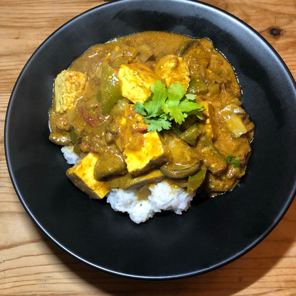 The original recipe was taken from Dan Toombs – The Curry Guy ‘light’ cook book. I modified the recipe to suit myself. Instead of being a Kashmiri chicken dish I changed this to paneer and mushrooms. I also added flour mixed with water to thicken the sauce, just a little tweak but for me a good tweak as this thickened the sauce beautifully. I did have an omission. Kashmiri Curry’s are famous for having a banana within the dish, I have to admit, I left this out!!