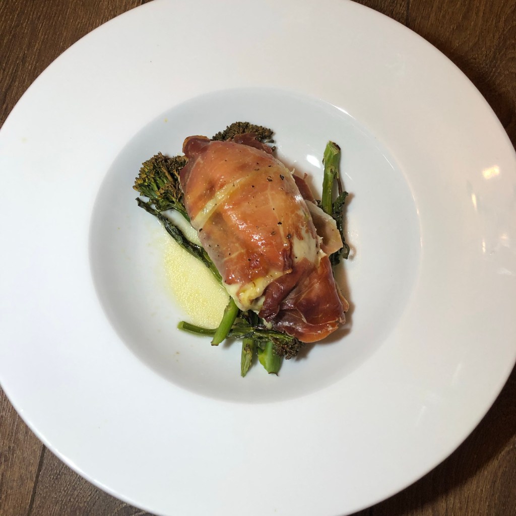 Dish 9 – Chicken breast stuffed with pesto, sun dried tomatoes and mozzarella wrapped in Parma ham and grill vegetables.