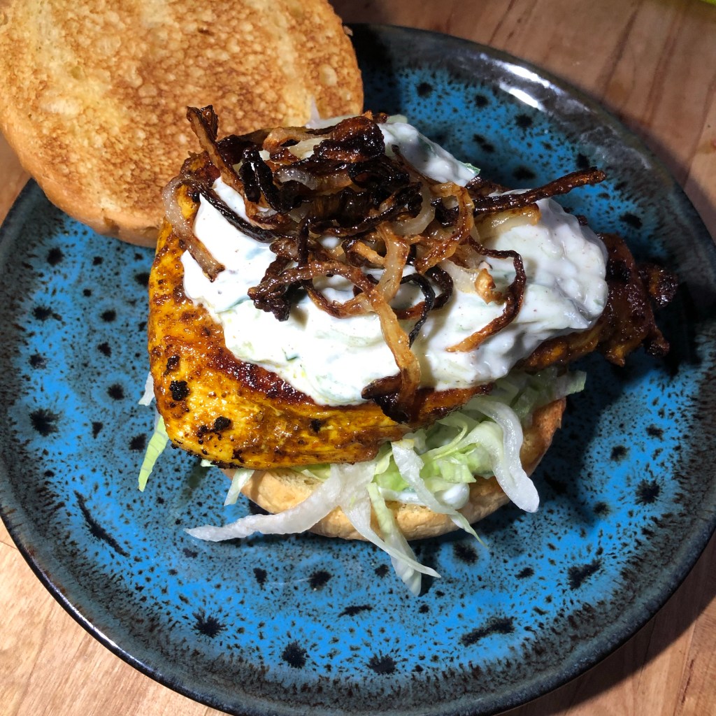 Dish 4 – Tandoori chicken burger with cucumber raita.