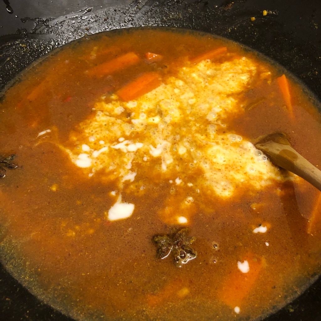 To serve I just warmed through a shop bought nann bread to soak up the sauce. Then I drizzled over a little toasted sesame oil which if I’m honest is a genius touch. Lifts the dish to another level. The dish was like a tofu broth. So many good flavours. I think now not doing any rice was the right thing to do. t