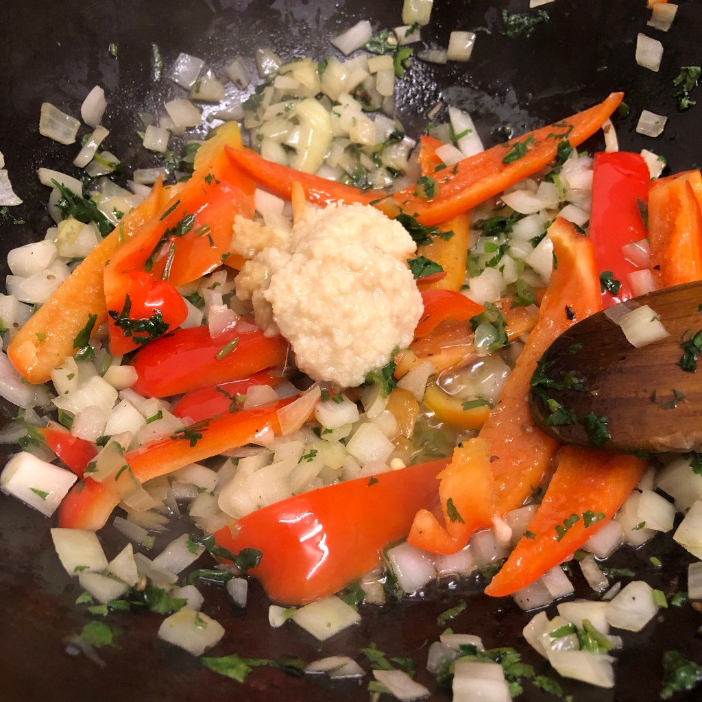 Once they have taken on a nice colour add the garlic and ginger paste.