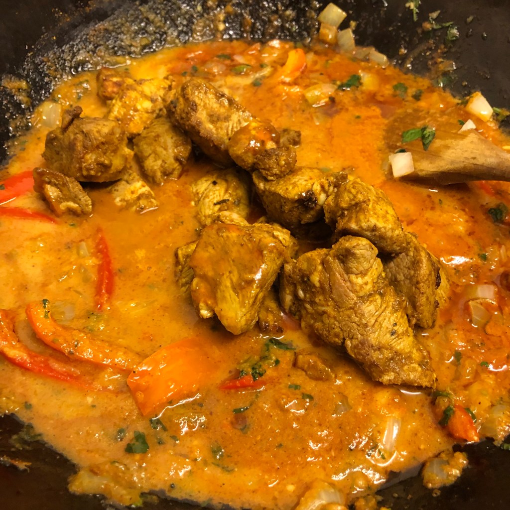 What I didn’t mention in amongst the ingredients is that I took the pack of diced lamb and marinated it in some shop bought tikka paste. I then heated a separate frying pan and fried off the lamb just to brown it, once it had taken on colour I removed it from the heat and allowed it to rest.