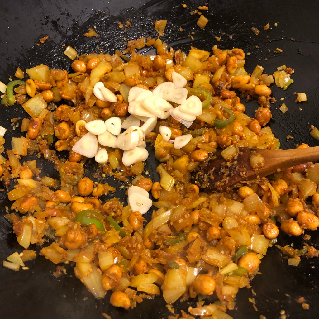 Once the onion is cooked and taken on its colour add the diced garlic for 30/40 seconds ensuring itās coated in the mixture.