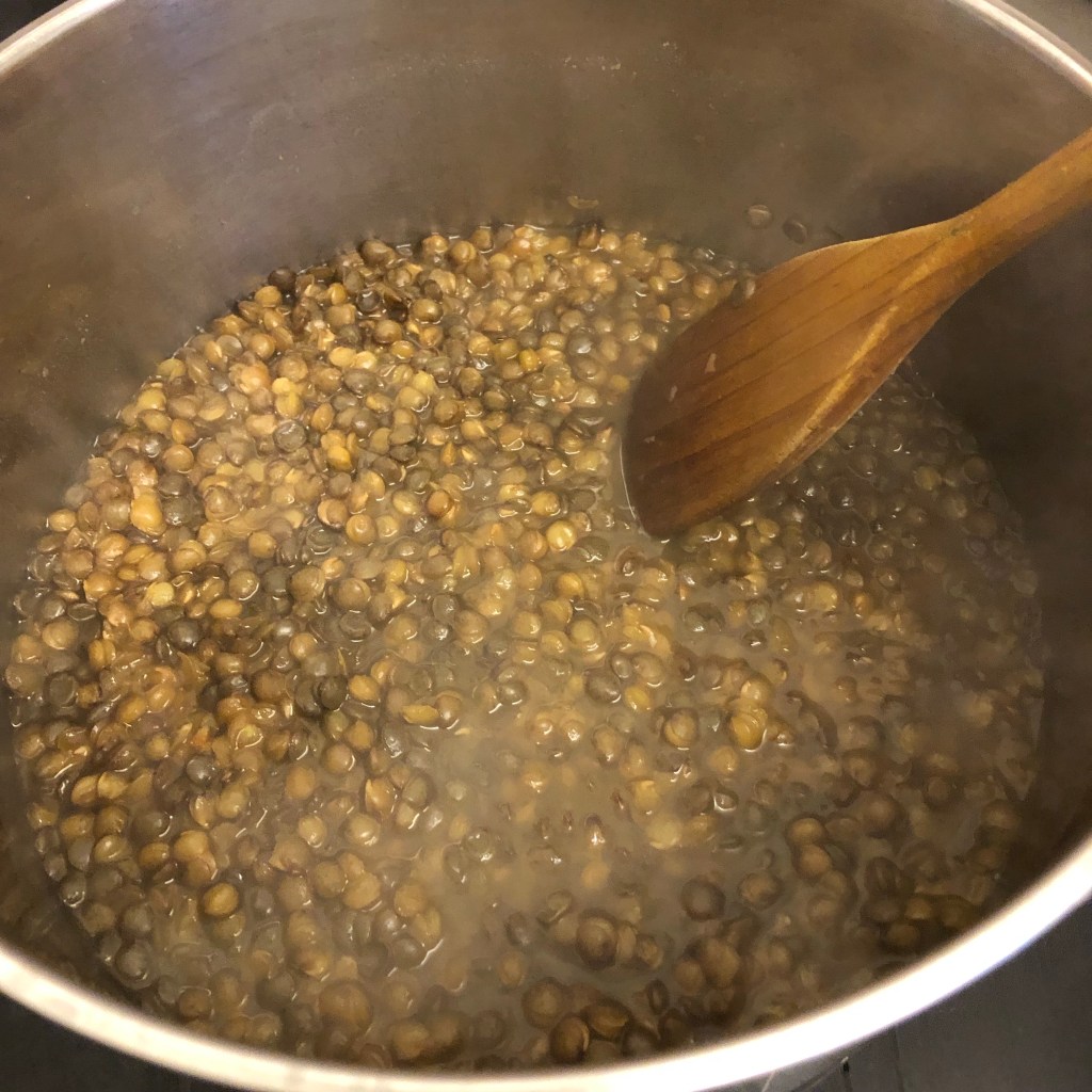 Wash the lentils. Add the lentils and the water to a pan, cover, bring to the boil and simmer for 15 / 20 minutes until the lentils are nice and soft with the water having reduced.