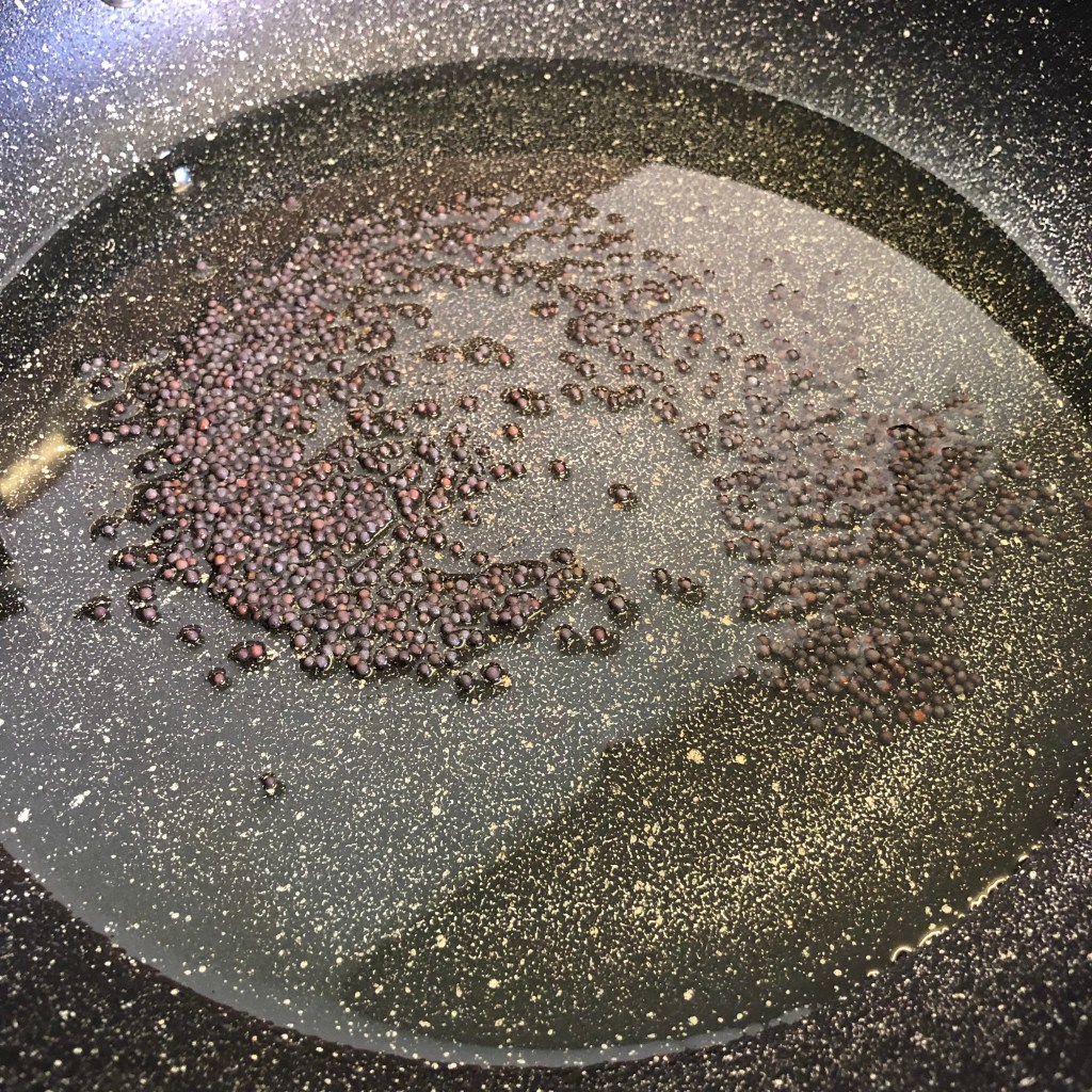 Method- heat the oil in a heavy based pan. When the oil is hot add the mustard seeds until they start to pop.
