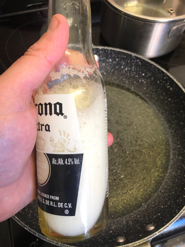 A little free tip…when cooking this….don’t knock your first really cold bottle of beer off the side all over the floor and units and this is all you have left….