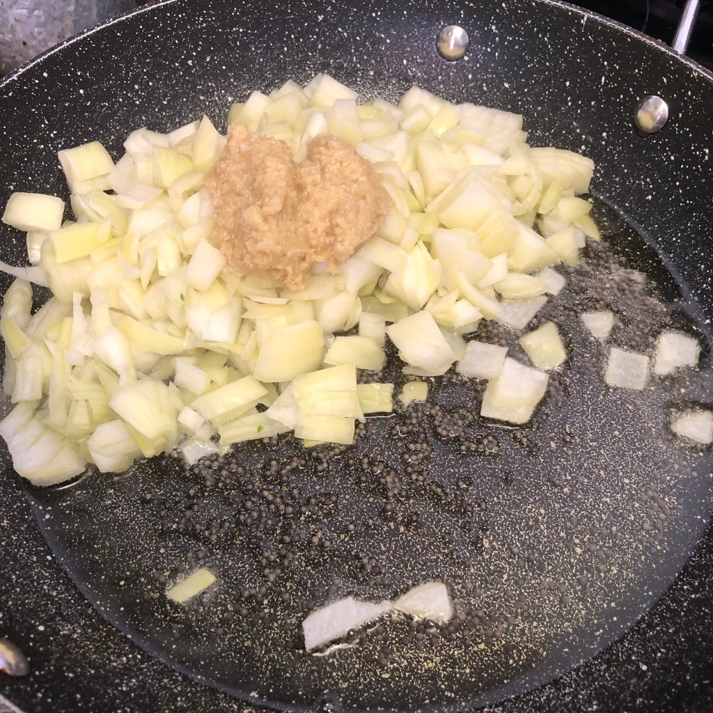 Sorry, back to the cooking…..as the mustard seeds start to pop add the diced onions along with the garlic & ginger paste cooking for 6 minutes.