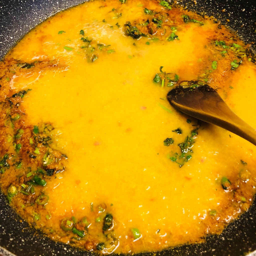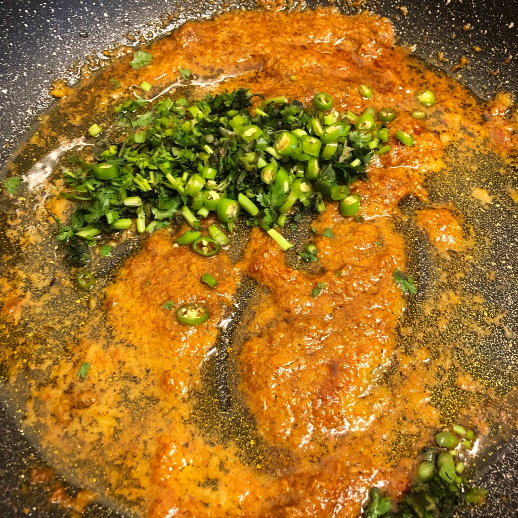 To finish the dish add the chopped coriander and fenugreek leaves. I served mine with steamed rice.