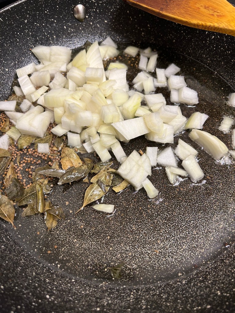 Add the chopped onions and fry for 5 minutes until them become nice and translucent.
