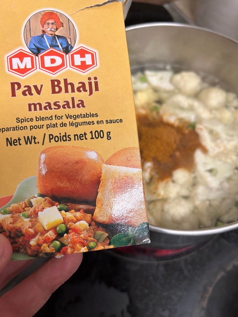 Place all of your chopped vegetables in a large pan, cover with enough water & 1 large heaped tsp of the pav bhaji masala plus a pinch of salt and bring to the boil. Cook until all the vegetables and nice and tender then put aside.