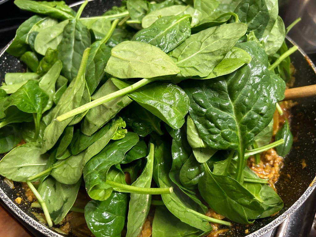 The spinach will naturally wilt down but it’s a pain in the ar@e until it does 😂.