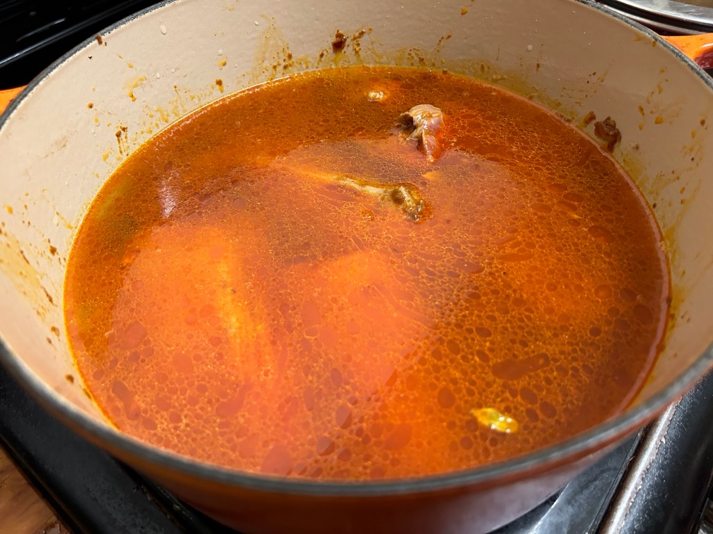 When the dish is served in the Rajasthan desert region of India, its colour, comes mainly from the hot ground chillies as its fiery red! This dish has been modified to remove quite a lot of heat which is replaced with cayenne pepper and paprika which again gives it its vibrant red colour.