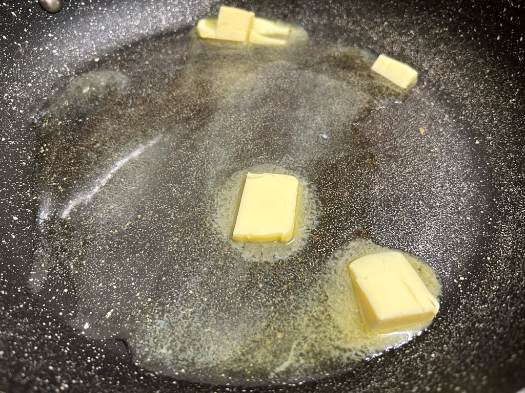 In a large high sided pan melt the butter.