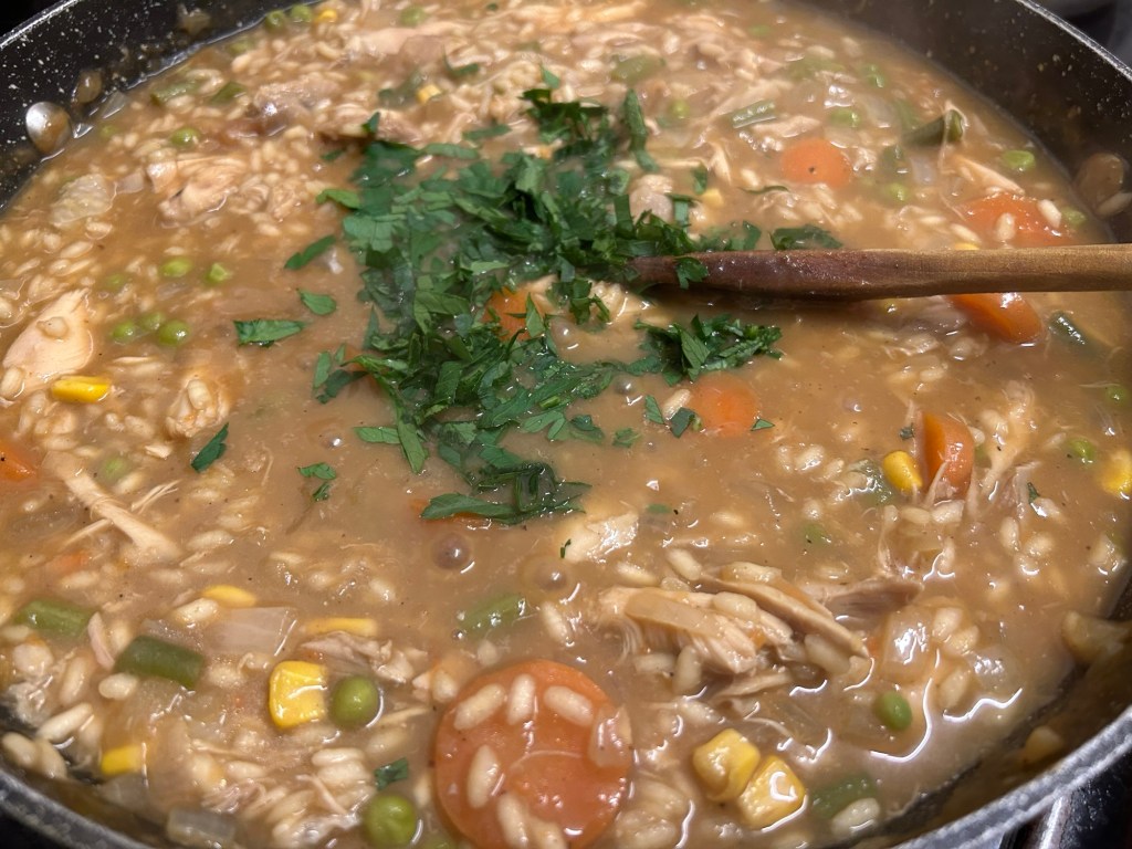 Such a tasty way to enjoy leftovers. The cost of the rice and parsley from Sainsbury’s was £3. So for £3 you have a brilliant tasty meal utilising the leftovers.