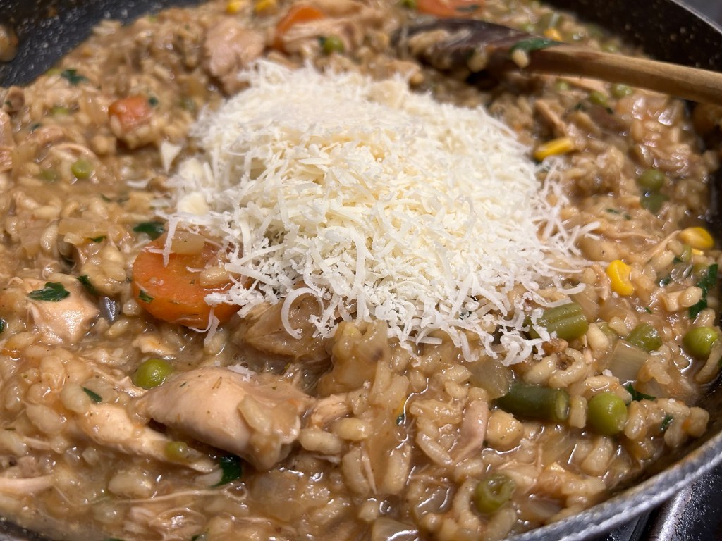 The kitchen smelt great. The flavours were building as the dish had the elements added. Once you’re happy with the texture of the rice to finish the dish add your grated Parmesan and mix well into the dish. This will give the dish a nice creamy feel to it.