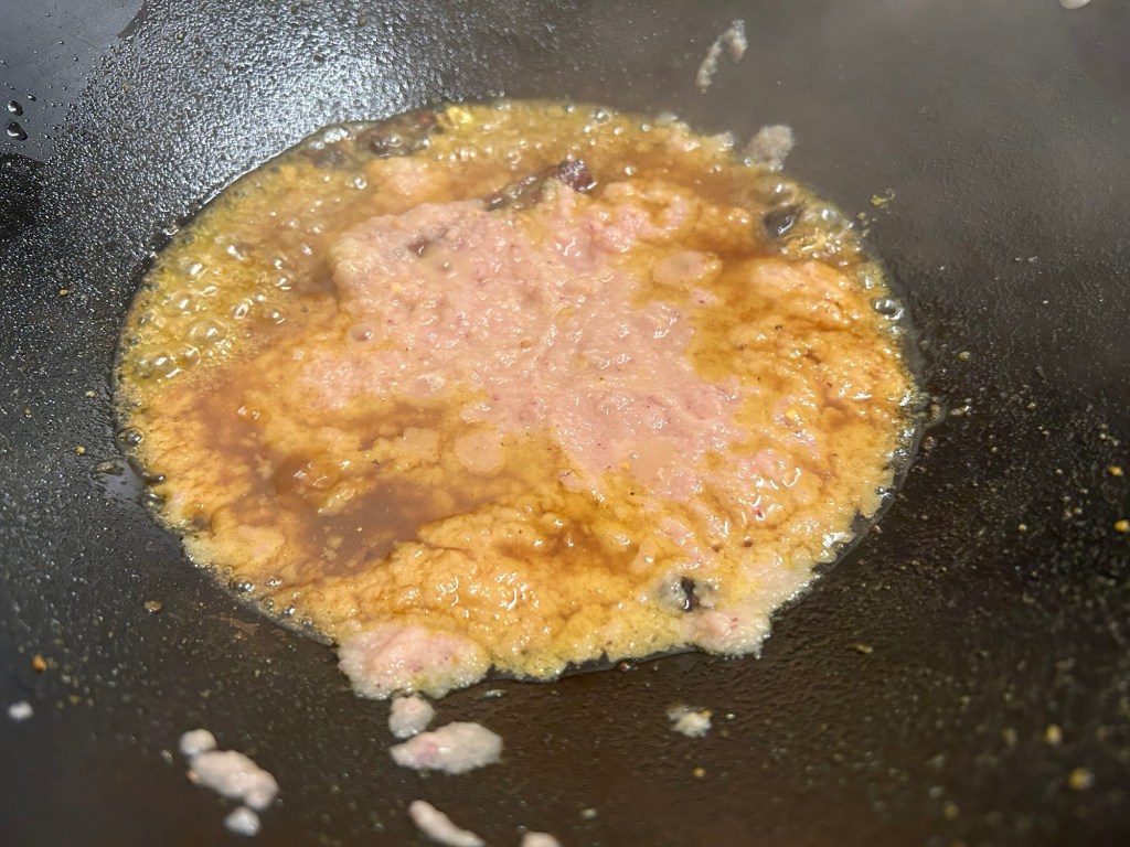 Cook this out for about a minute to remove the rawness of the ingredients. It will change colour slightly.