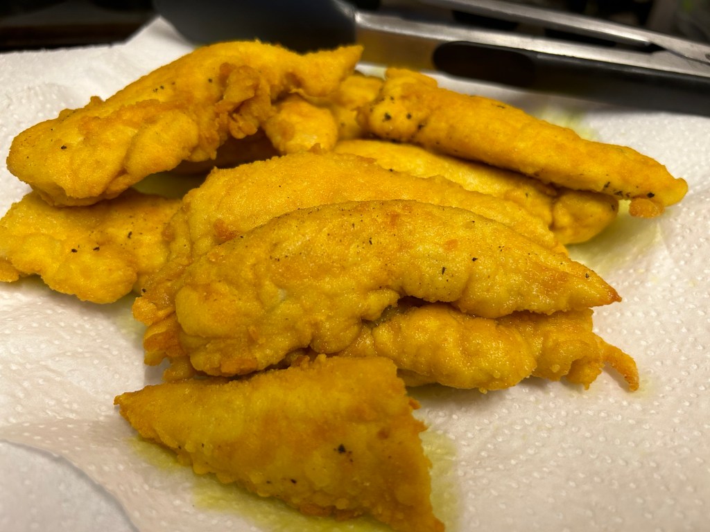 Once you’ve cooked all of your chicken, set it aside on kitchen paper to drain off any access oil.