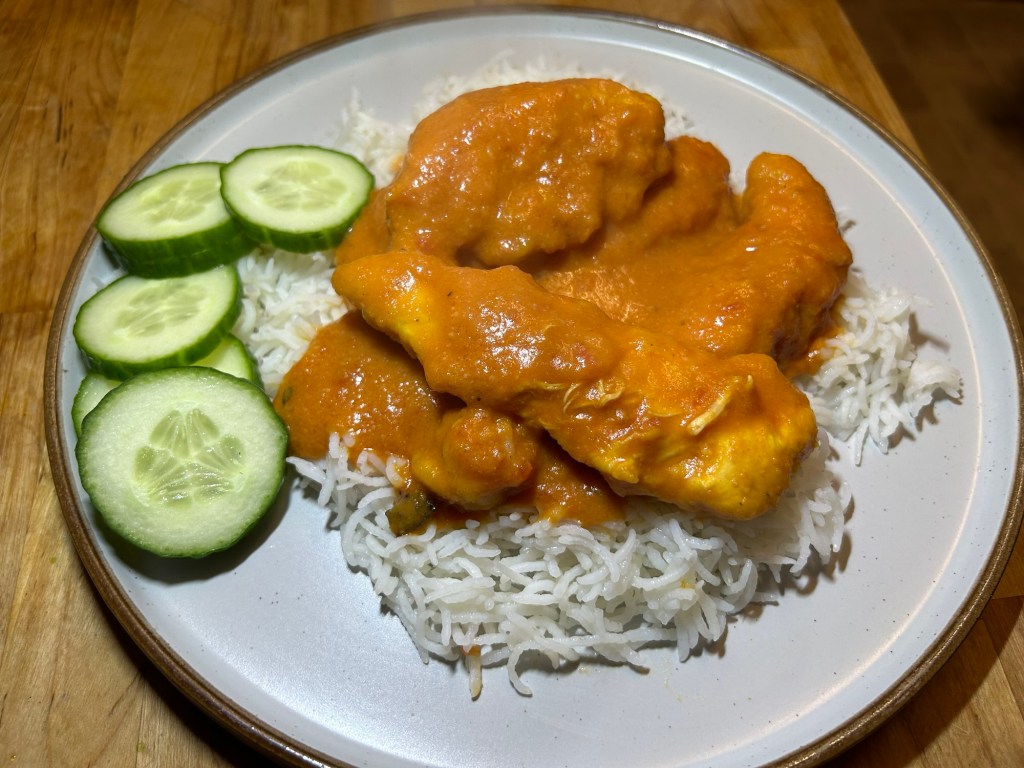 I served mine up with precooked steamed basmati rice and diced cucumber.