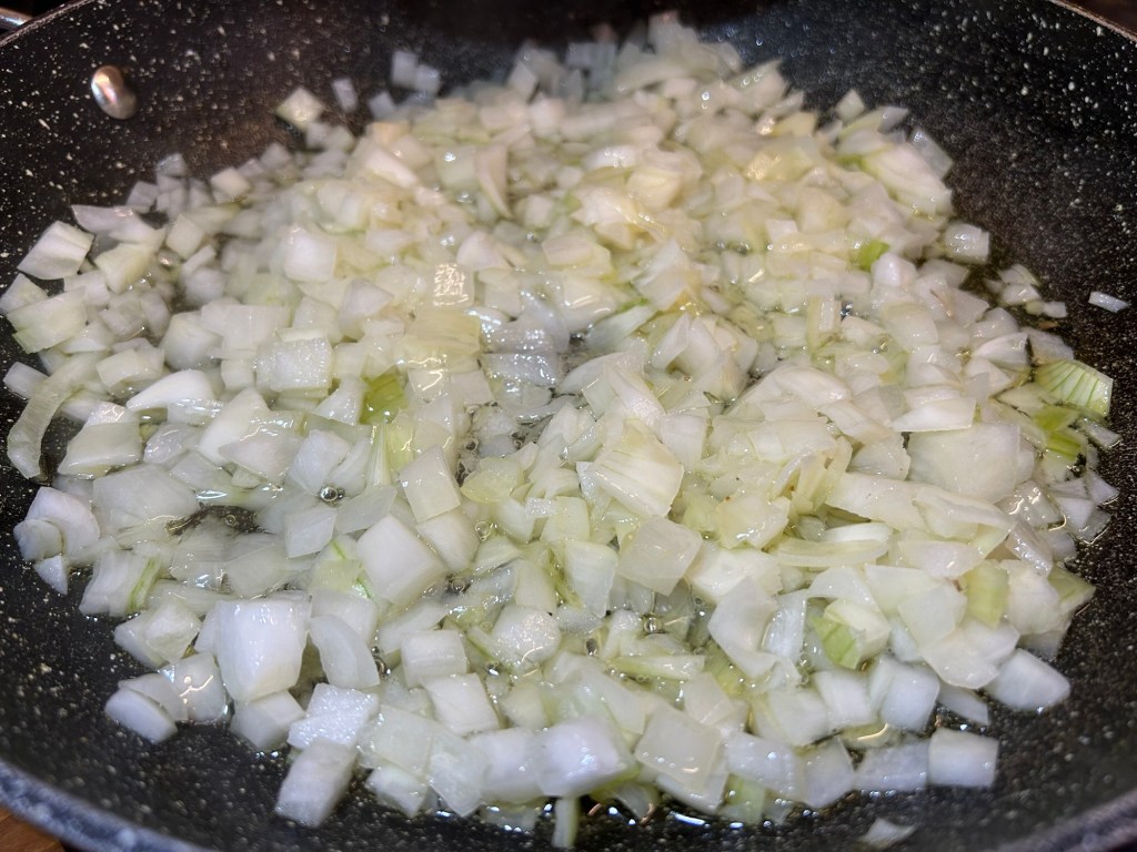 For the sauce – Heat the oil in a heavy based pan. Once the oil is hot add the diced onion and fry off for between 5 / 7 minutes to colour the onion.