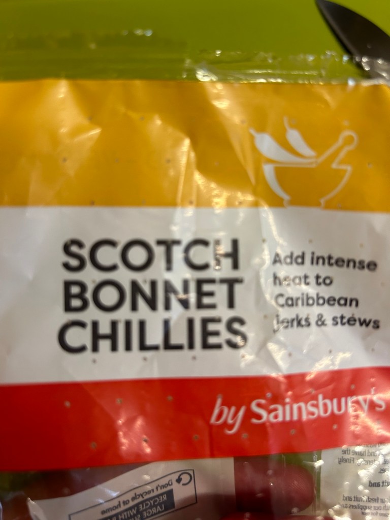 This is the first time I’ve cooked using ‘scotch bonnet chillies’. I did actually change the recipe I was using and dropped out quite a bit of heat. I did the sensible thing and used gloves during the prep again to limit the pain as lets just say I’ve learnt from experience the hard way!!