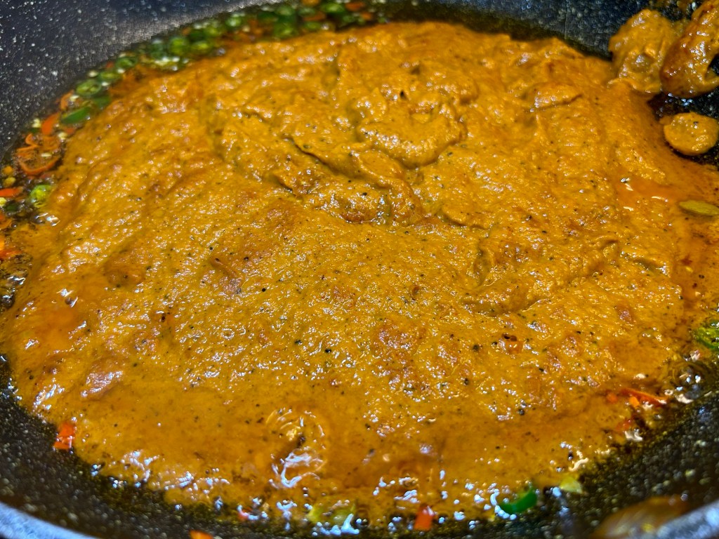 Add in the garlic and ginger paste allowing it to cook for 30 seconds or so.