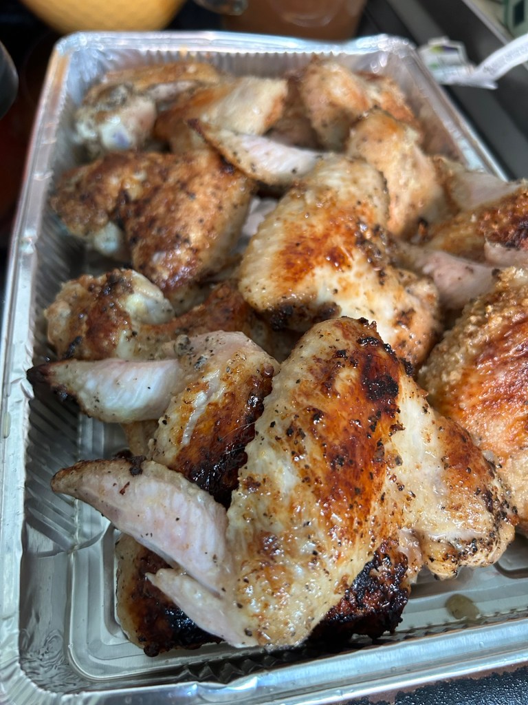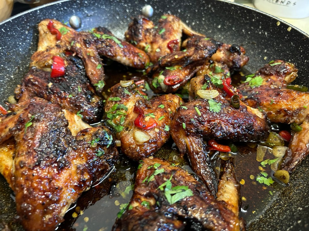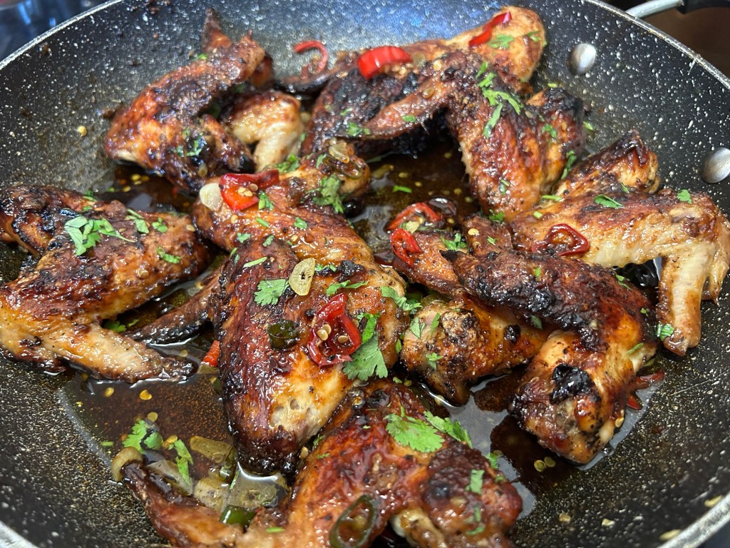 Just as an additional way of ensuring the chicken is cooked all the way through I added the fried wings to a tray and placed in the oven for 20 minutes at 190 degrees.