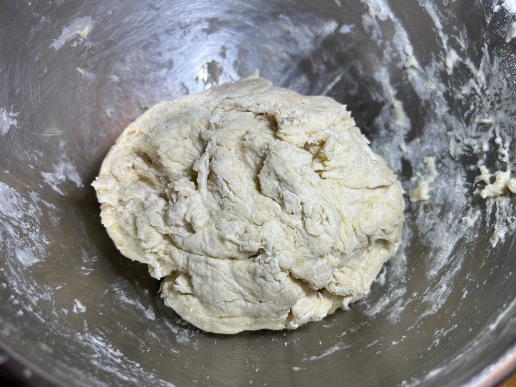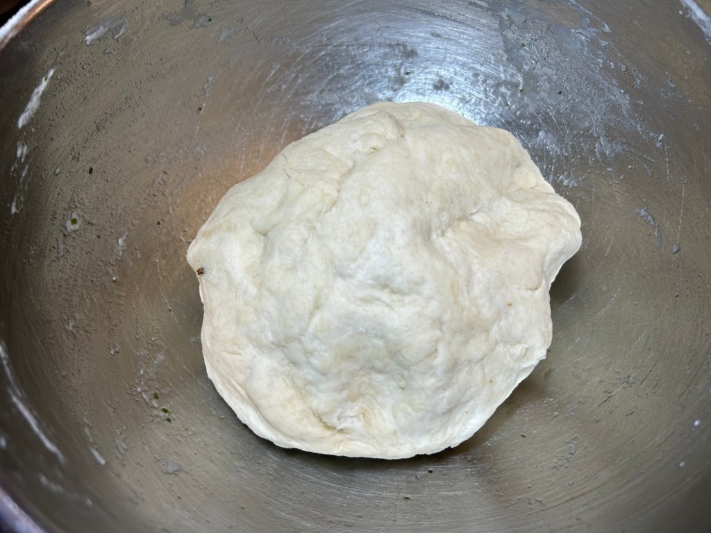 Work the ingredients together in the bowl with your hands mixing well. You want to create a bowl of dough in the bowl.