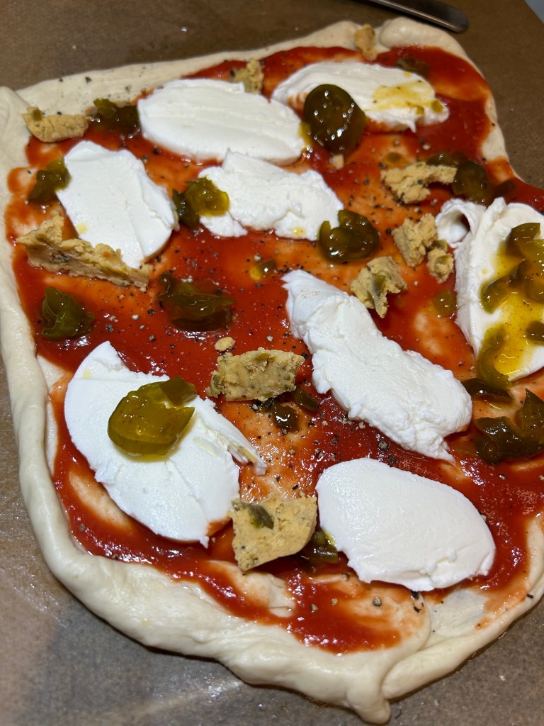 At this point you can add any topping. Obviously start with tomato passata. Then build away!!!