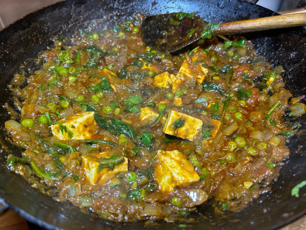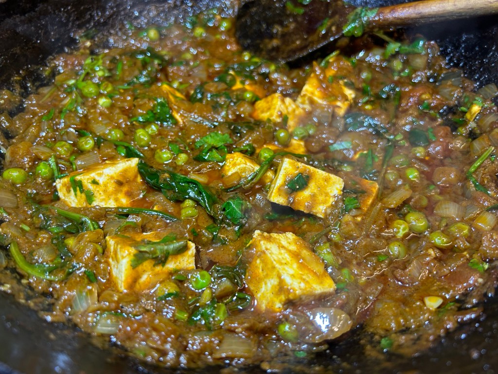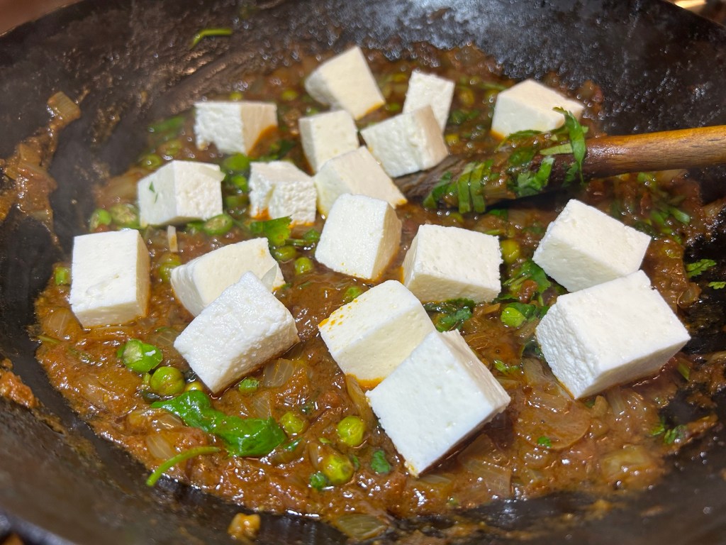 You only needed to cook the paneer for 3 or so minutes as you want it to retain its shape and texture without breaking down.