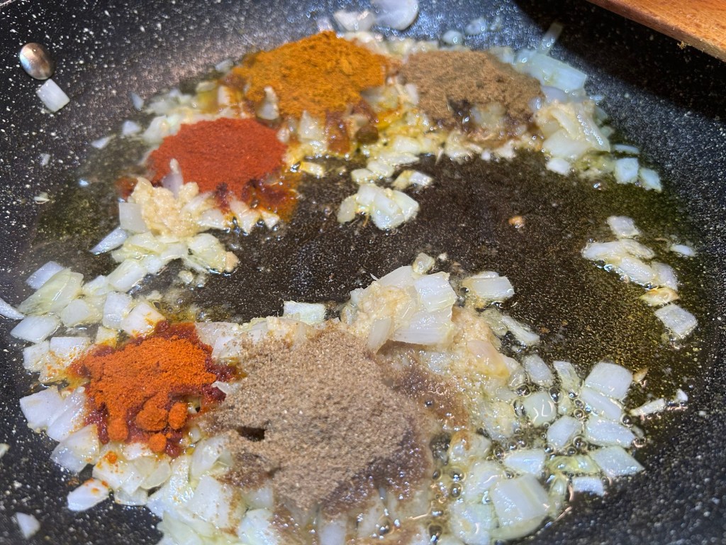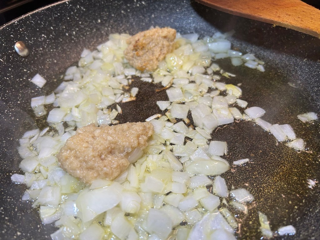 Once your onion is cooked add the garlic & ginger paste. Cook this for 30 seconds or so ensuring you mix the paste in well.