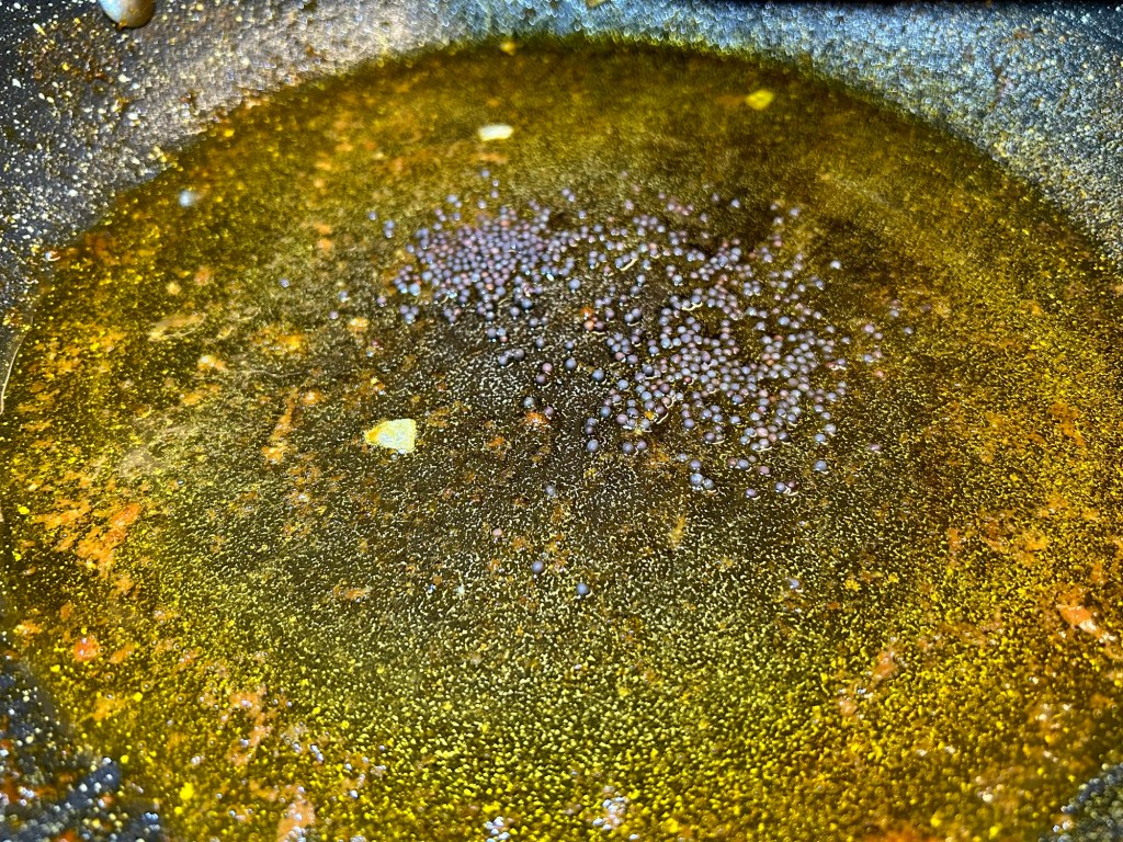 Heat the remaining oil in the same pan. Once it’s hot add the mustard seeds and cook into they start to pop and fizz in the oil.